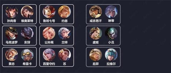 10、孙尚香-维奥莱特鲁班七号-约恩成吉思汗-琳蒂
