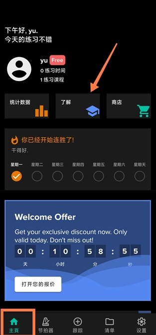 1、节拍器:简便易用的节拍器界面,拥有您所需的所有功能,可升级节拍并追踪您的进度。