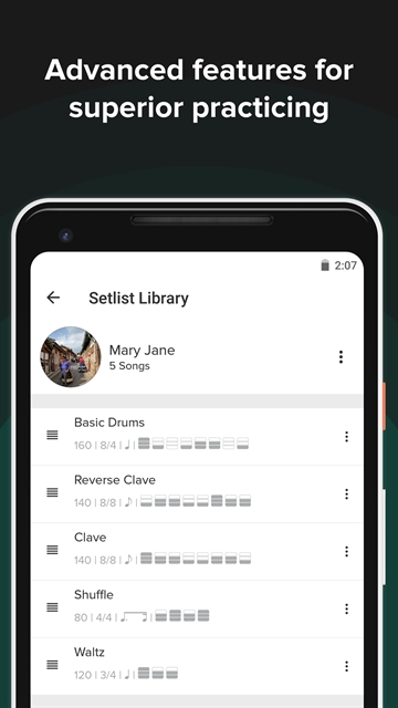 19、曲库云同步:您的歌曲和曲目将自动备份并同步到所有设备上,以便您随时在节拍器中播放。