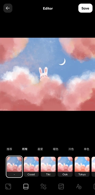7、最后,点击保存可以分享您的照片到社交媒体上或直接将其保存到您的设备中。