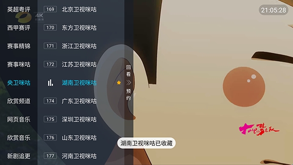 1、唤起电视频道列表,长按需要收藏的频道名字,即可添加收藏。