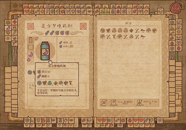 4、复方梦境药剂:拥有致幻III与睡眠II效果,但使用后可能出现梦醒时的呕吐、头晕等不良反应。