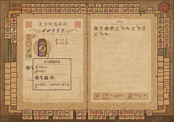 5、复方附魔药剂:结合闪电III与中毒II特性,涂抹于武器上,能给敌人带来极大的痛苦。