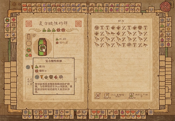 2、复方酸性炸弹:融合酸III与爆炸II特性,使用前需采取掩体和酸液防护措施,并确保与炸弹保持至少50米的安全距离。若不慎被酸液沾染,请立即用大量清水冲洗。