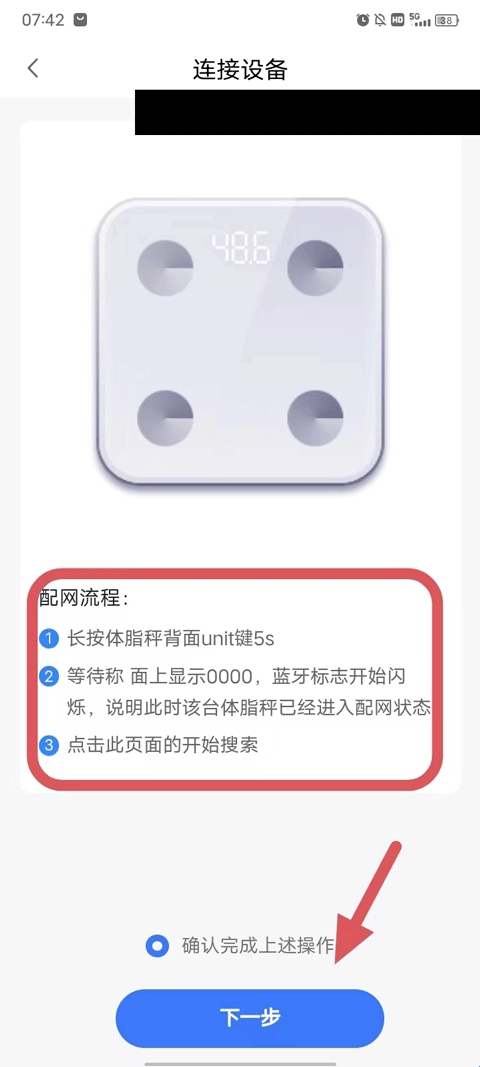 5、注意要对小度体脂秤按照下方步骤操作: