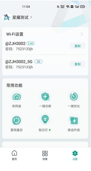 2、WiFi管理:支持查看、分享、修改WiFi名称与密码,支持调整WiFi强度与其他专业配置,“一键优化”让无线网络稳定且流畅。