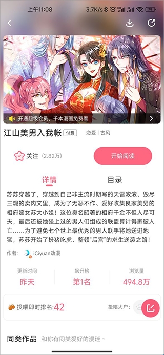 5、点击后打开漫画详情界面,可以先看看漫画的简介,感兴趣即可点击开始阅读。