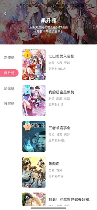 2、在打开的主界面,也可以点击榜单,查看最受欢迎的漫画,不用去寻找什么漫画好看。