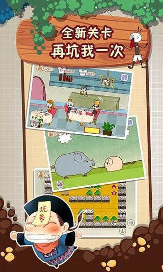 2、游戏中设计了大量奇思妙想,趣味连篇的小游戏关卡,每一个都很坑爹很有趣。共设计了24关,更多坑爹关卡还在持续更新中。