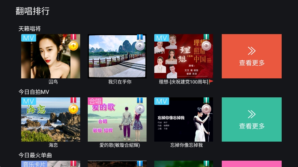 天籁K歌是一款非常好用的智能电视K歌软件,这款软件内包含了海量的歌曲资源,各种热门歌曲、最新歌曲、经典歌曲等在这里都可以找到,每首歌曲都配置了MV并设置了点歌台功能,让用户在家里也能感受到KTV的氛围。软件的音质清晰流畅,搜索简单智能,喜欢唱歌的朋友们千万不要错过哦。