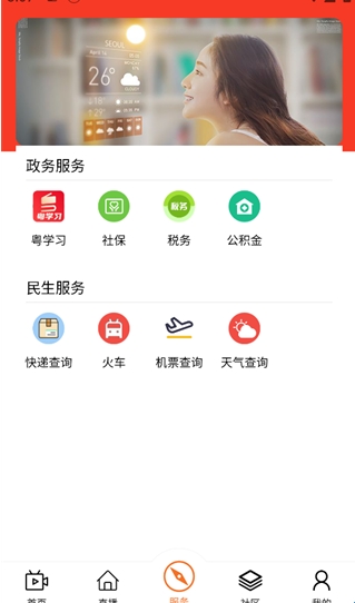 服务整合粤学习、社保、税务等政务服务及快递、火车、机票等民生查询功能。