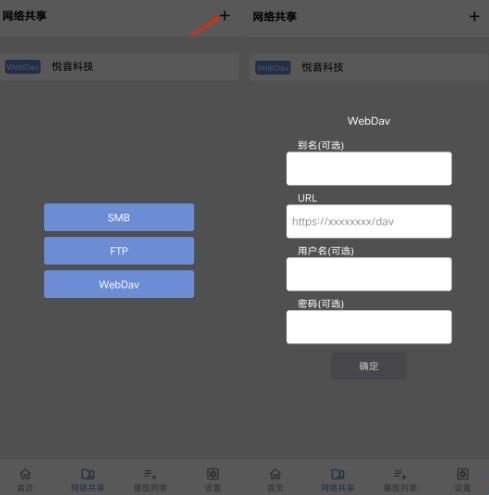 3、Reex播放器App同时也支持网络共享播放,支持 SMB、FTP、WebDav三种协议,你可以观看在家里局域网电脑共享或者NAS服务器共享的影片及相册视频。