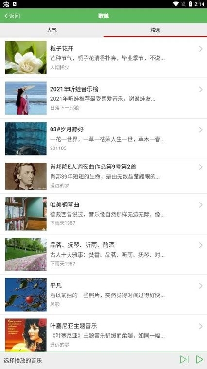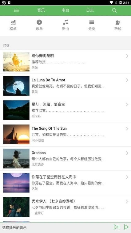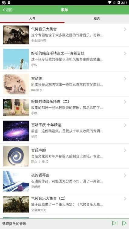 3、各种风格的音乐可以随意的选择,支持喜欢的音乐收藏与分享;