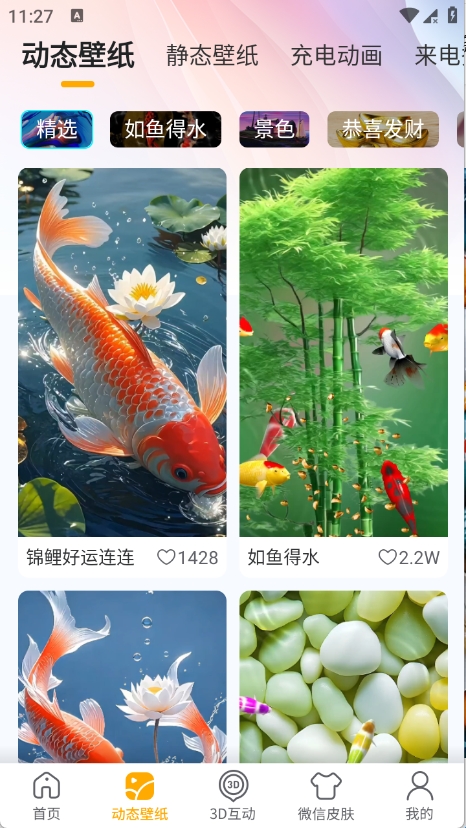 桌面养鱼壁纸是一款非常好用的壁纸下载平台。软件内置动态壁纸、静态壁纸、充电动画、来电铃声等功能,除了能够很好的美化手机桌面,还提供了一系列的实用工具,适用性非常强。此外软件每天都会大量更新,还有多种智能推荐方式,感兴趣的朋友们快快下载吧。