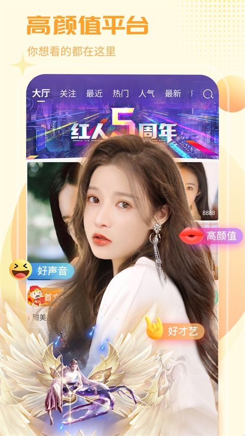 红人直播,一款非常有趣的互动直播平台,用户可以通过这款软件认识一群热爱生活、爱冒险、爱潮流、爱分享的人,并通过软件与好友分享生活中的趣味事情。你可以随意关注自己喜欢的主播,关注他的动态,并能点赞聊天,享受零距离交流体验。
