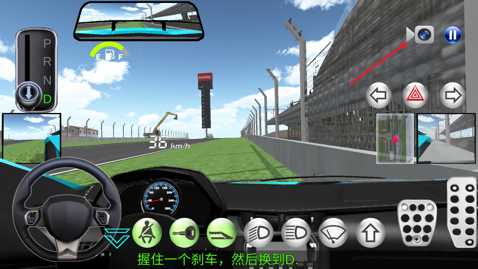 7、点击右上角的摄像机还能让我们切换到第一人称视角来驾驶。