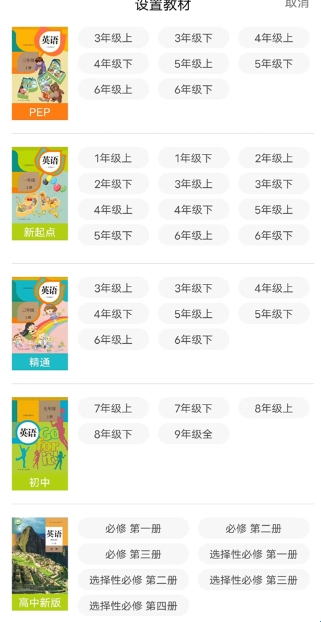 3、确定好后我们就可以开始学习啦,如果你还想要切换的话,再次点击右上角的课本即可更换。