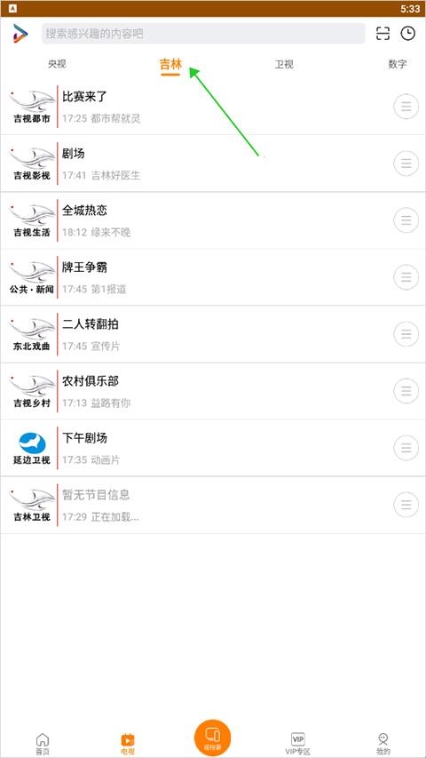 2、也可切换顶部导航栏至【吉林】观看吉林各大卫视直播