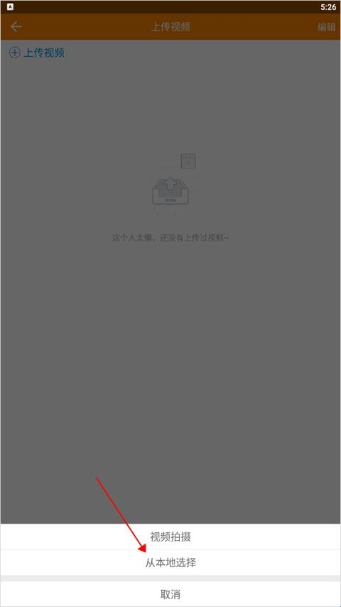 3、在底部弹出的下拉选项中选择一种视频上传方式,此处以点击【从本地选择】为例子