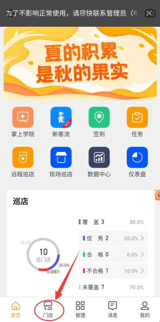 1、首先在本站下载安装好软件后,使用你手机号码注册登录软件,进入到主页面,选择“门店”。