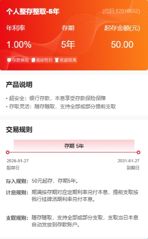 1、个人整存整取-5年