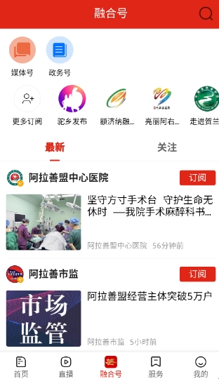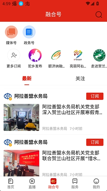 阿拉善融媒的特色订阅平台,用户可以根据兴趣选择关注不同领域的官方账号,如民生服务、文化旅游、教育健康等。