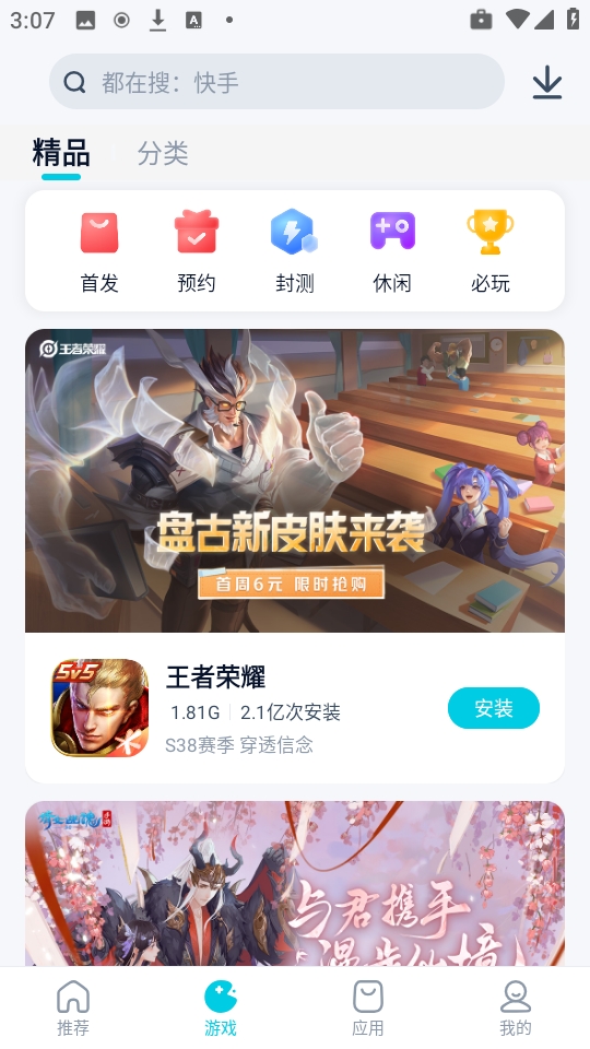 1、应用与游戏下载:支持搜索、分类浏览和榜单推荐,快速定位目标应用。提供“秒玩”功能,部分游戏无需安装即可试玩,节省存储空间。2、应用管理:支持应用更新、卸载、安装包清理,“我的”页面可查看下载历史与预约记录。3、个性化推荐:根据用户下载历史与兴趣标签,推荐相关应用。首页“精品”板块展示编辑精选内容,降低选择成本。4、福利与活动:提供应用礼包、下载积分,部分新游首发前可预约领取奖励。