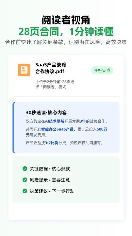 阅读者模式:快速提取核心内容、梳理关键数据、识别潜在风险、给出行动建议。