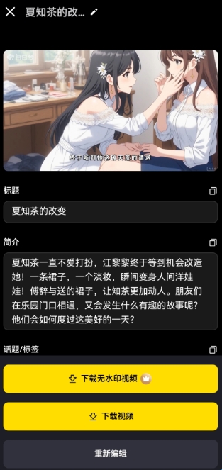 8、生成完成之后,你可以修改视频的标题和简介,点击【下载视频】即可。