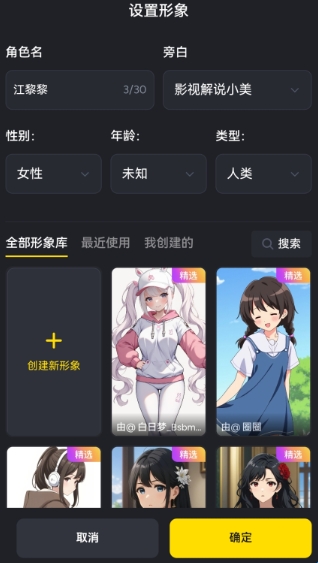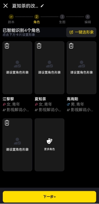 4、开始设置角色形象,点击选择角色。白日梦AI官方版会根据你的剧本智能识别有几个角色。