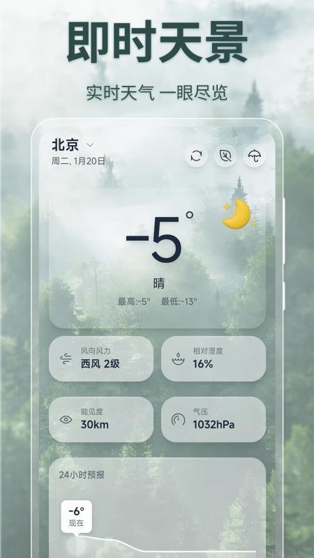 1.实时天气:提供当前地区的实时温度、体感温度、湿度、风力风向等信息,让用户全面了解当下的天气情况。