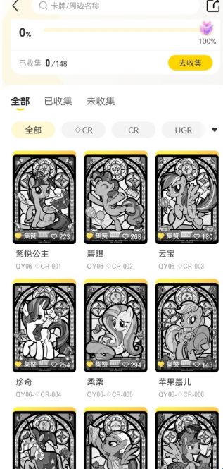 3、进入图鉴后,会显示这个弹次的所有卡片,你能在上方筛选不同等级的卡片。