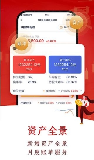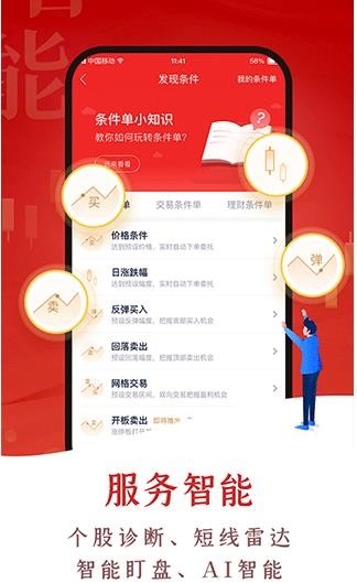 1、全面的金融服务:股票开户、模拟炒股、新三板交易、基金、融资融券、港股通、投资、期权、国债逆回购,沪深A股、B股、创业板、科创板、期权期货、上证指数,沪深300,深证成指给您全面的股票、投资、理财服务。