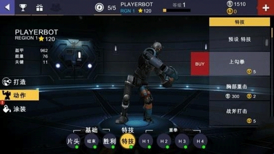 6、编辑机器人则是外在的升级,看上去就很厉害的升级,也是小编最喜欢的升级方式。打造、动作和涂装三大类。打造主要是机器人不同部位的机甲升级;动作则让你的机器人在比赛中动作更炫酷,更具观赏性;而涂装则是将机器人喷涂成不同的颜色,更帅气。