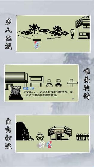 1.古风画面:运用绚烂的像素画面,营造出古雅别致的游戏视觉效果,塑造出别具一格的古风韵味。