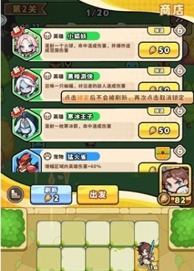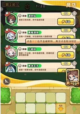 4、消灭怪物可以获得经验和宝石,提升等级后可以进入商店选择新的英雄、道具和宠物来增强自己。