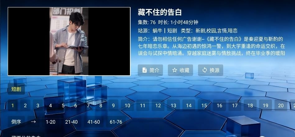 1、全品类短剧播放:覆盖复仇、重生、悬疑、校园、古言等多种题材短剧,同步收录热门漫剧剧集,支持大屏高清流畅播放,适配电视/盒子等设备解码能力。
