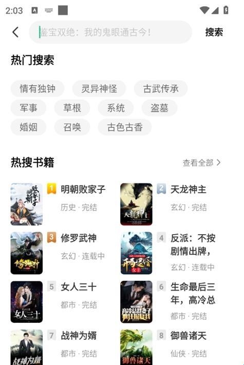 3、点击搜索框,输入小说名称可以快速搜索