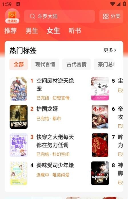 2、进入首页可以看到海量热门小说