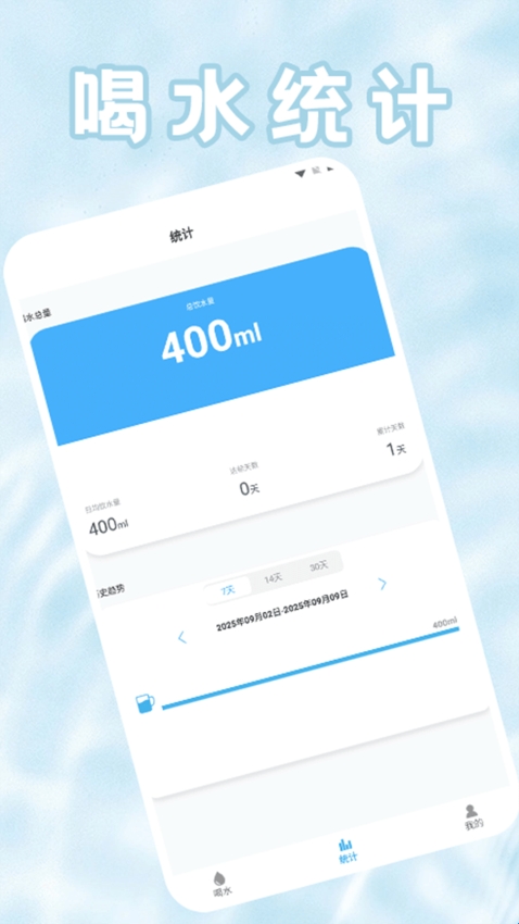 软件会自动的对你的喝水数据进行统计,通过图表数据直观的掌握自己的喝水情况。
