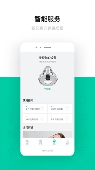 2、睡眠质量报告:通过多维度监测:呼吸事件、鼾声监测、睡眠周期和睡眠体位等数据,分析用户睡眠质量,输出睡眠报告;关注睡眠呼吸健康。