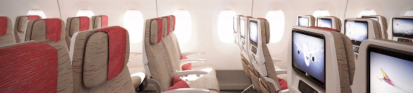 A350豪华经济舱的座位与一般经济舱座位相比伸腿空间宽 4英寸(约合 10.2厘米),可为您提供更加舒适愉快的飞行体验。