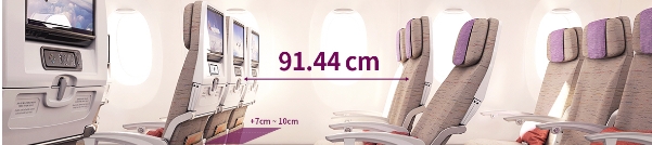 伸腿空间座位比一般经济舱座位的伸腿空间至少宽 16厘米,加宽的座位可让您的旅行更加舒适。