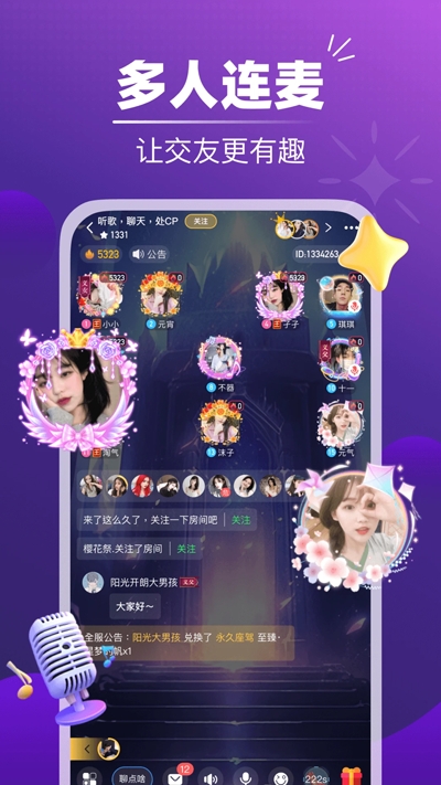 3、多人同时聊天,炫酷的动画效果,让您炫耀好声音,成为大明星。