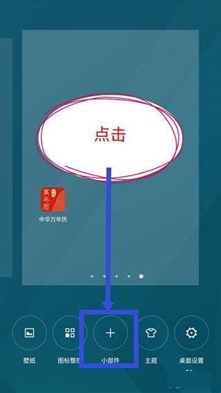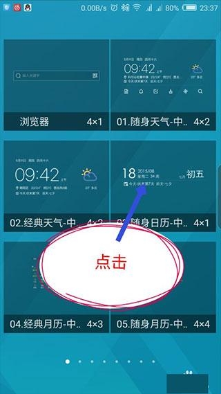 然后在打开的手机小部件里面,找到要添加的万年历插件,根据提示,拖拽插件或者点击插件;