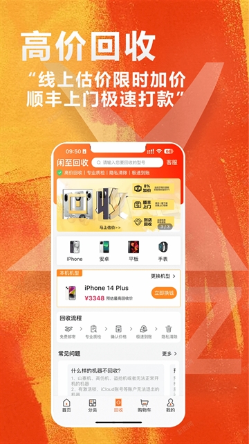 2、回收:线上估价,高价回收,上门收件,极速打款