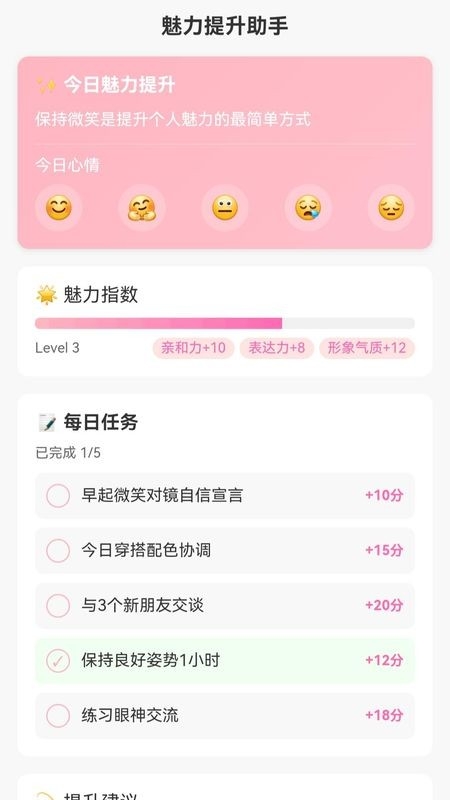 通过科学的每日任务体系,系统化提升亲和力、表达力与形象管理能力,每个进步都清晰可见。