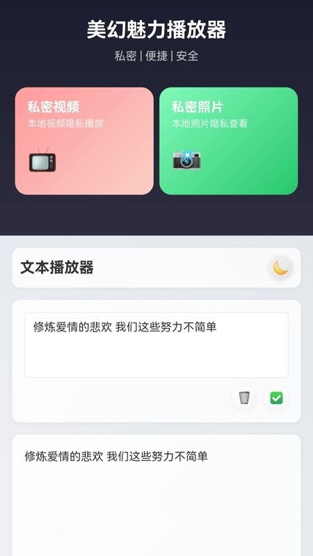 支持本地视频、照片的安全播放,采用高级加密技术,确保您的私人影像资料绝对保密。