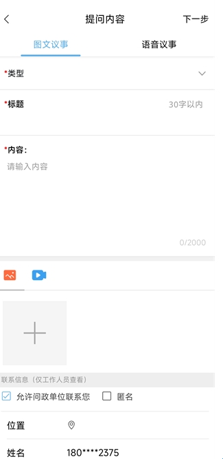 填写联系信息:可选择匿名,位置与姓名可自动或手动填写。
