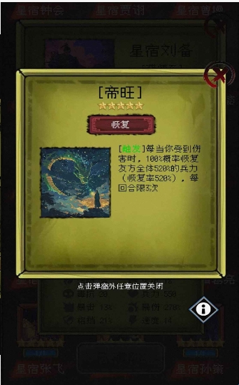 4、游戏现在已有3个故事包,15条超长故事主线,接近2000个随机事件。游戏有200多位三国名将(和魔改名将)可供收集和战斗构筑,20多个技能树,数百种锦囊、兵符、政令。